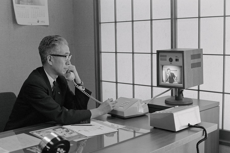 Read moreThis Japanese Executive communicates with one of his subordinates via a new video telephone in his office. The multi channel videophone was invented and installed by the Nippon Electric Company and cost $1,300 U.S. dollars for a one-channel set up in 1967. #