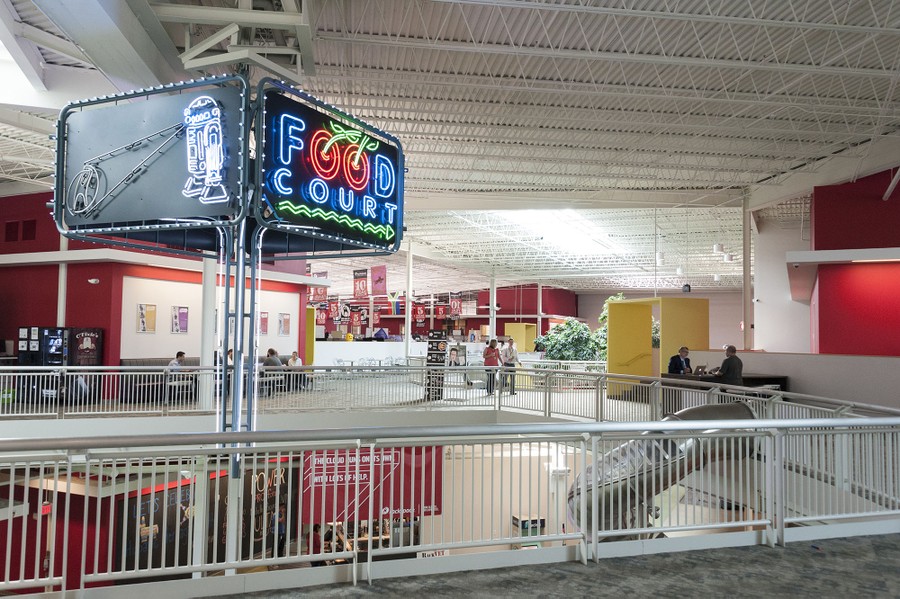 This is where Rackspace comes in. It’s one of the leading companies that sells hosting services (space at their data centers), and the support that comes with it, to other companies around the world. Rackspace is headquartered in San Antonio, Texas, but its employees are based all around the world. The company started in a downtown San Antonio high-rise, but quickly outgrew the space. At the time, one of the company’s executives had recently purchased an unsuccessful shopping mall on the outskirts of the city, so Rackspace moved into the old Windsor Park Mall. With departments that used to be department stores, and a slide being the fastest way to get from one floor to the next, the mall has been renovated to become what is maybe one of the most unique office headquarters in America.