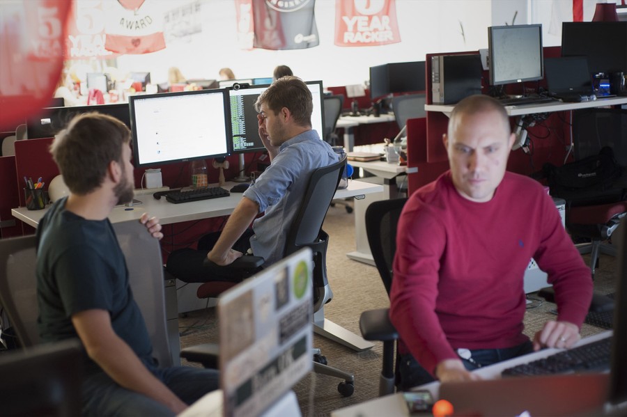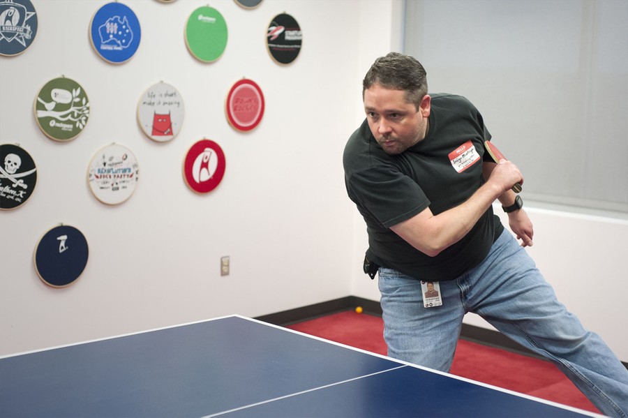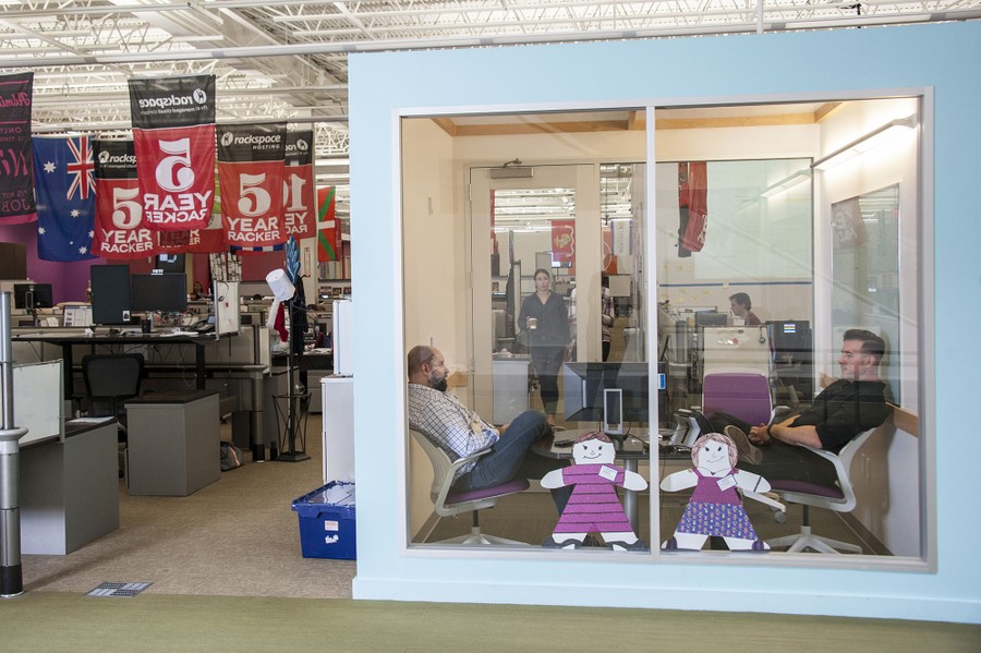 Like many other tech companies, Rackspace puts an emphasis on merging the work/home life. Rackspace’s employees, often known as 'rackers' frequently bring their pets, and occasionally their children to work, there’s yoga in the offices, snacks are provided, and each desk is a personal statement. Many rackers work remotely from home and hardly see an office more than once or twice a week. Screens are filled with video conferences as employees consult each other from across the office or across the globe. The company’s hierarchy seems to be rather lateral, as well. The CEO sits in a cube no different than any other racker, and he’s open to chatting with anyone who stops by.