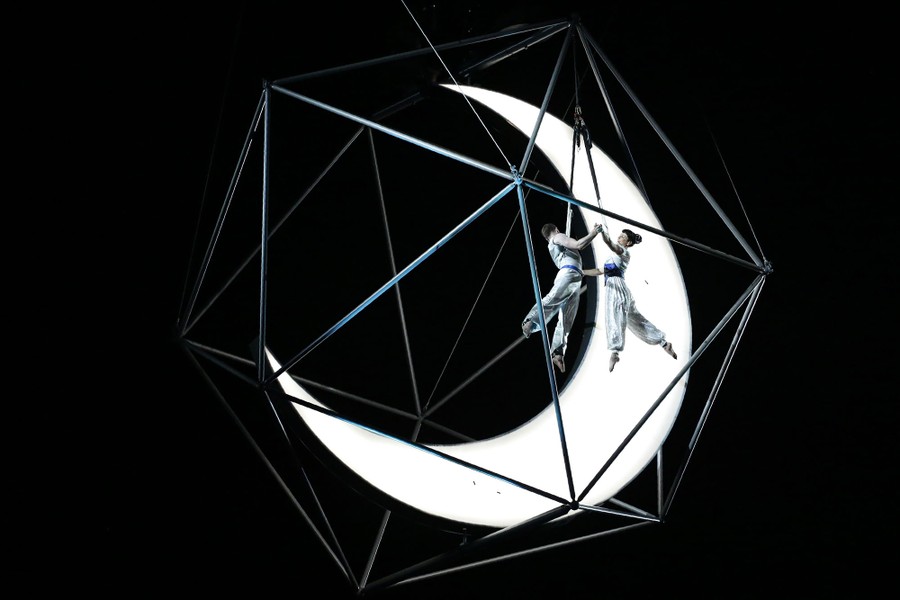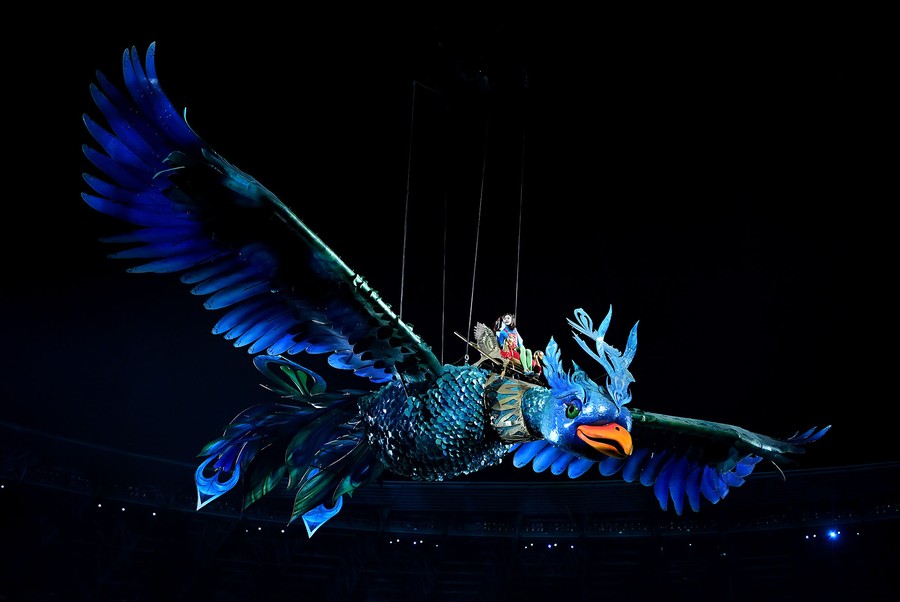 Read moreA girl rides on a giant phoenix during the opening ceremony. #