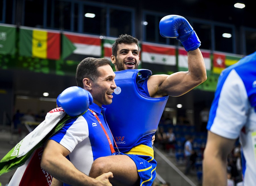 Read moreIran's Yazdan Mirzaei reacts after beating Egypt's Ayman Mohamed during the men's 75 kilogram Wushu event at Baku 2017 on May 22, 2017. #