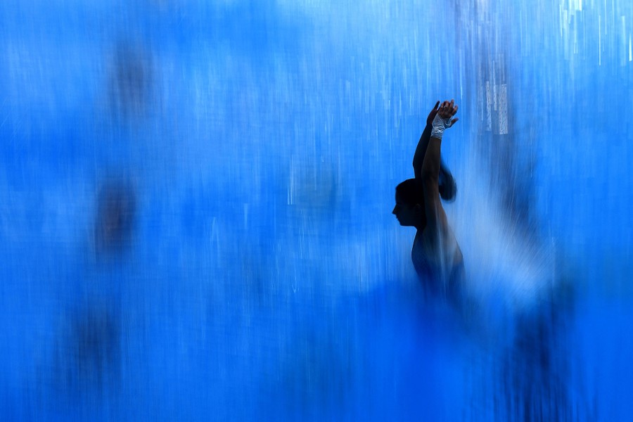 Read moreA diver enters the water during a training session at the Baku Aquatics Center on May 18, 2017. #