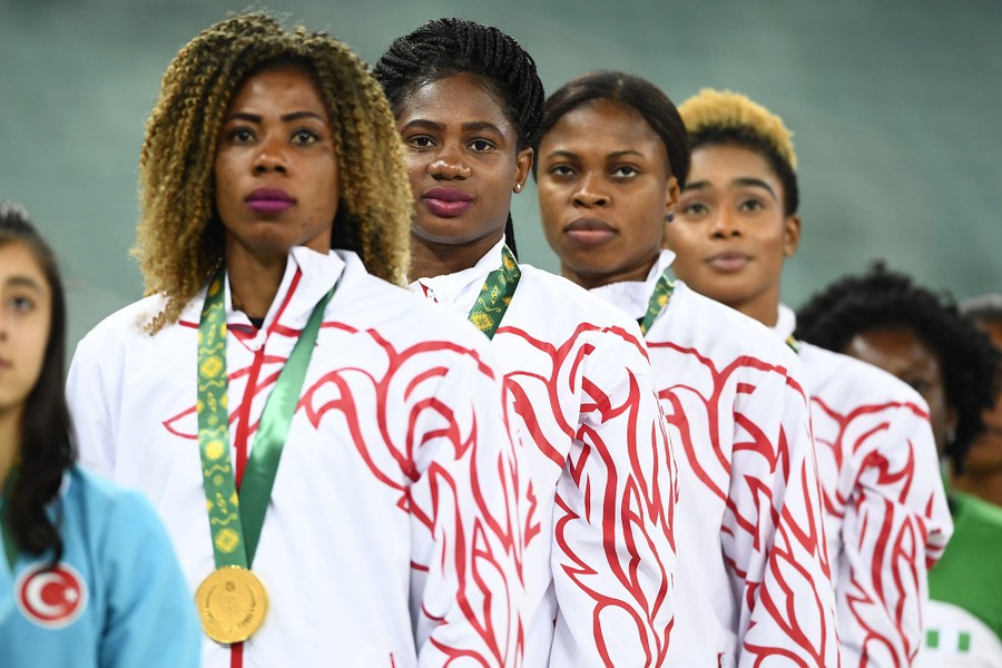 Read moreTeam Bahrain poses on the podium for the Women's 4 x 400-meter relay event on May 20, 2017. #