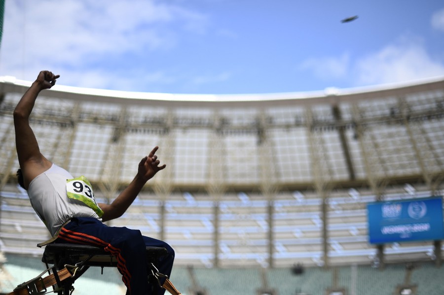 Read moreAfghanistan's Mohammad Bila Mirbat Zai competes during the Men's Discus Throw F57 at the Olympic Stadium in Baku on May 17, 2017. #