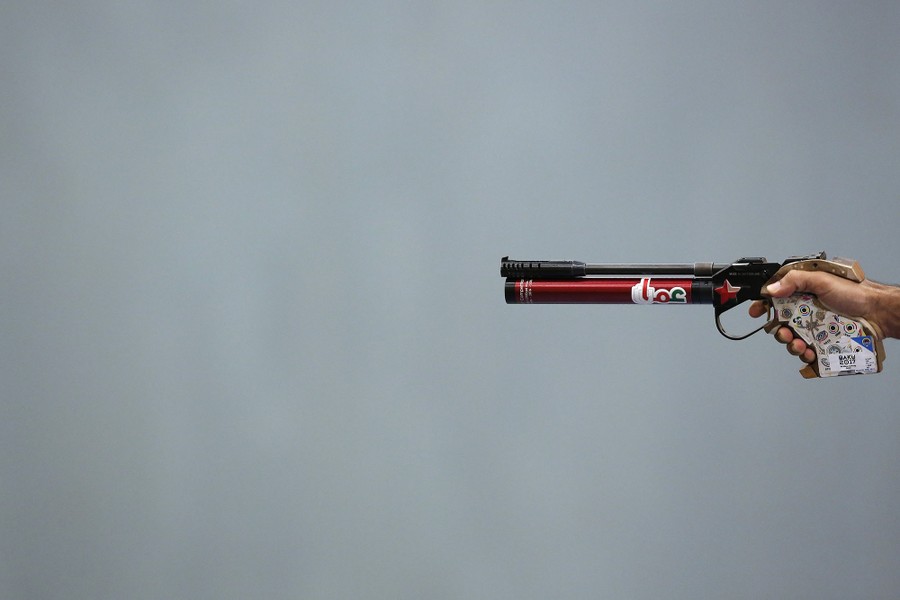 Read moreA shooter competes during the mixed team's 10-meter air 50 pistol event at Baku Shooting Center on May 17, 2017. #