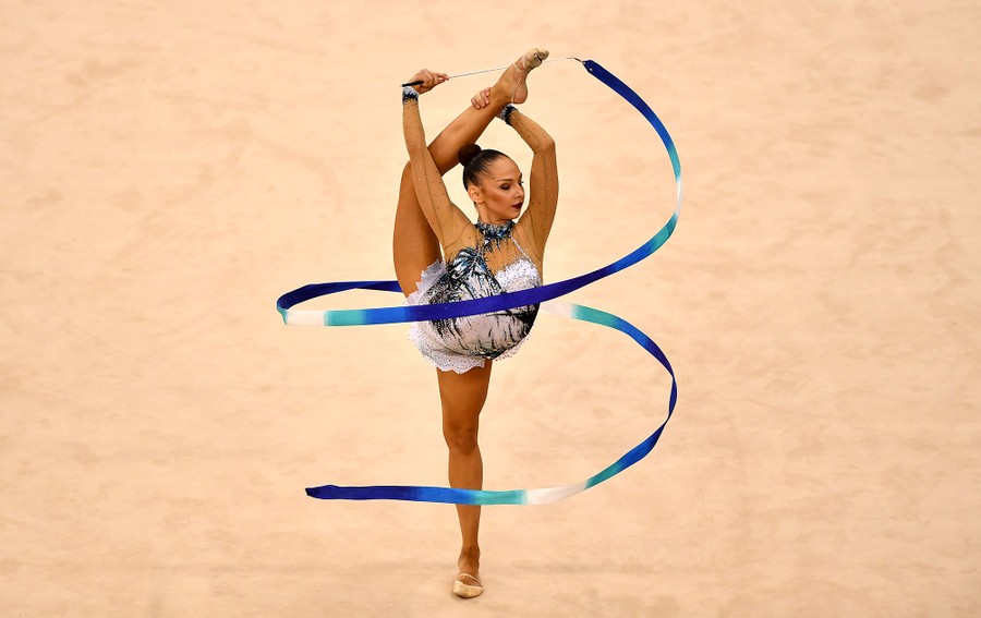 Read moreAnastasiya Serdyukova of Uzbekistan competes in the Women's Ribbon Qualification during Day 2 of Baku 2017. #