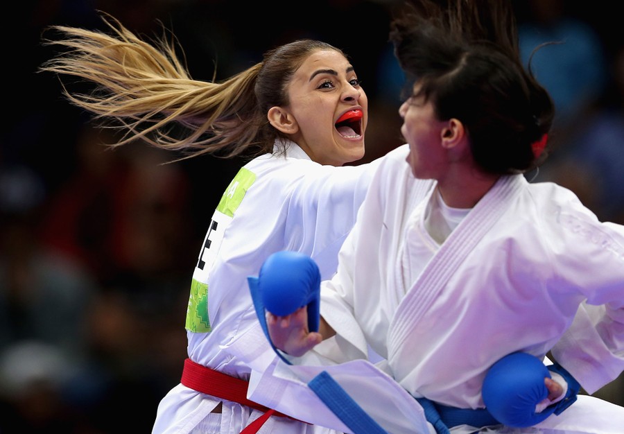Read moreIlaha Gasimova of Azerbaijan and Yassmin Attia of Egypt compete in the Women's Karate Kumite -55 kilogram gold-medal match during Day 2 of Baku 2017. #
