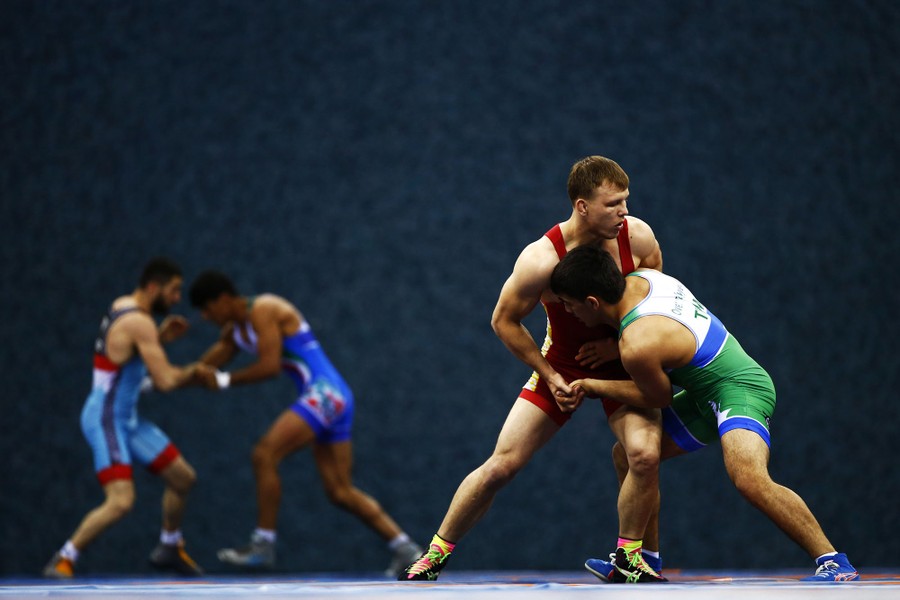 Read moreWrestlers compete in the wrestling event at the Heydar Aliyev Arena on May 17, 2017. #