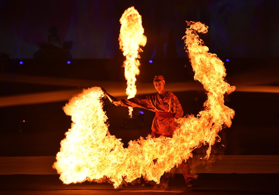 Read moreAn artist performs in the closing ceremony for the Islamic Solidarity Games at Olympic Stadium on May 22, 2017, in Baku, Azerbaijan. #