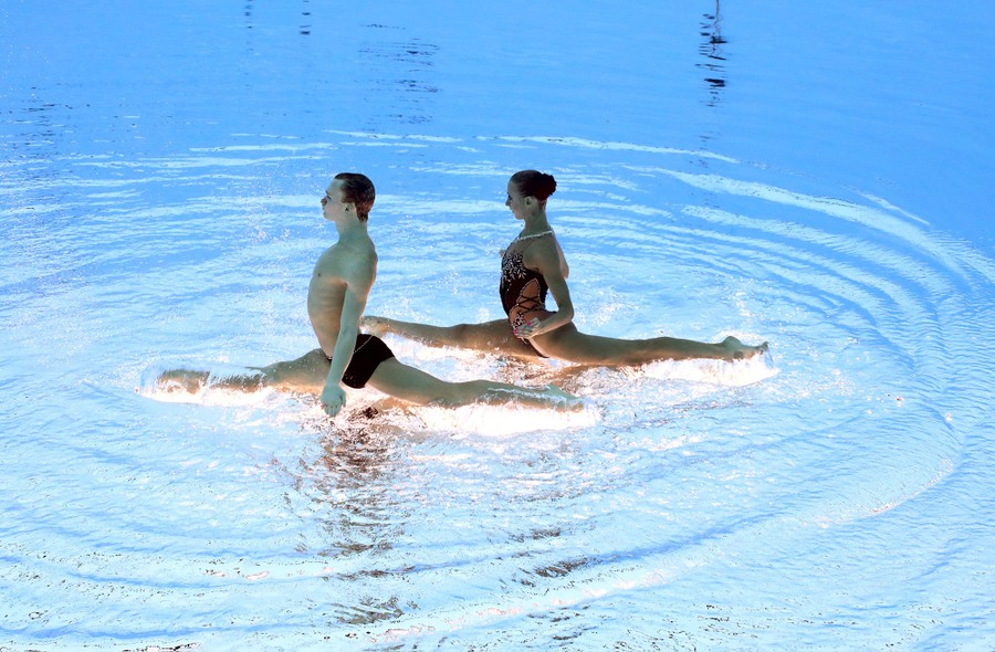 Read moreMikhaela Kalancha of Russia and Aleksandr Maltsev of Russia in the Mixed Duet Synchro Technical, Preliminary Round on day two. (This image has been rotated 180 degrees. Click to see the right-side-up version.) #