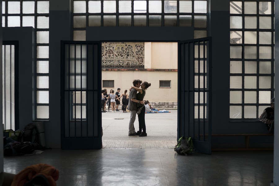 Read moreA young couple embraces in a courtyard of the Institut Moises Broggi, together with students occupying the school in Barcelona, one of the designated polling stations for the disputed October 1 referendum on independence from Spain, on September 30, 2017. People were occupying the polling stations to try and ensure they would remain accessible when the polls opened. #