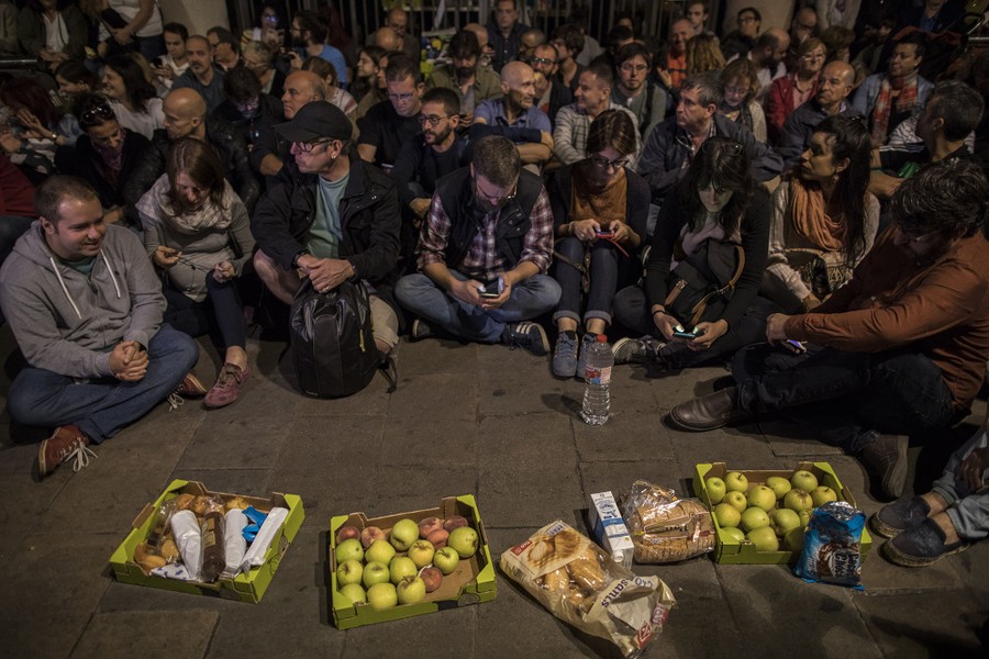 Read morePro-referendum supporters gather outside the Escola Industrial of Barcelona polling station to wait for the result of the independence referendum on October 1, 2017. #