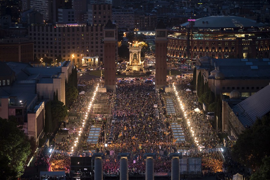 Read moreCrowds gather to await the result of the independence referendum at the Placa de Catalunya on October 1, 2017, in Barcelona. Shortly after midnight, the regional government announced the results, saying that despite a low turnout—42 percent of registered voters—90 percent of the votes cast were for independence. #