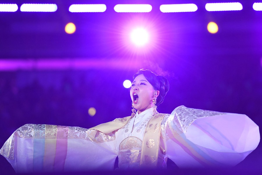 Read moreSouth Korean singer Hwang Su-mi in performance during the opening ceremony on February 9, 2018. #