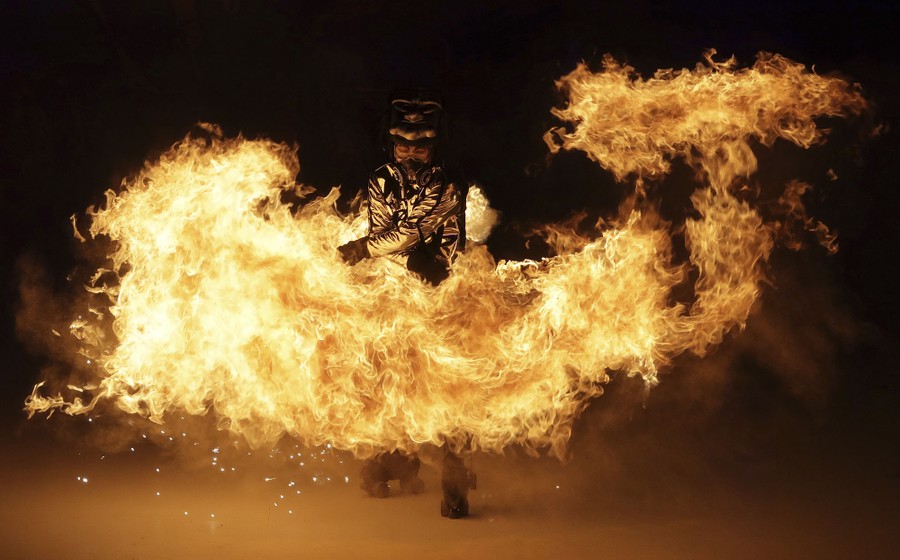Read moreA dancer performs with fire during the Winter Olympics opening ceremony on February 9, 2018. #