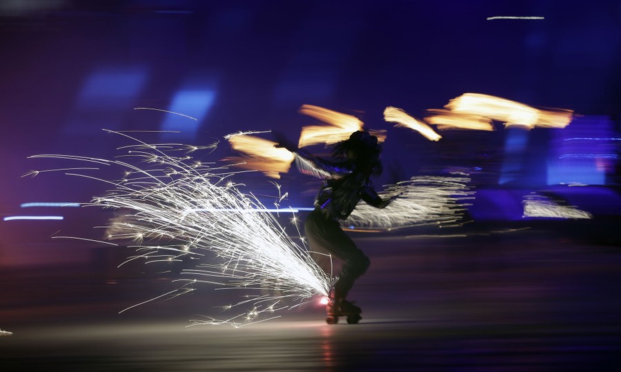 Read moreA dancer skates by in the opening ceremony on February 9, 2018. #