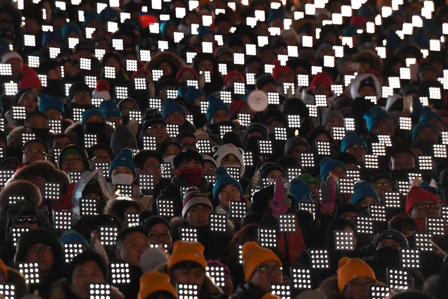 Read moreAudience members attend the opening ceremony of the Pyeongchang 2018 Winter Olympic Games on February 9, 2018. #