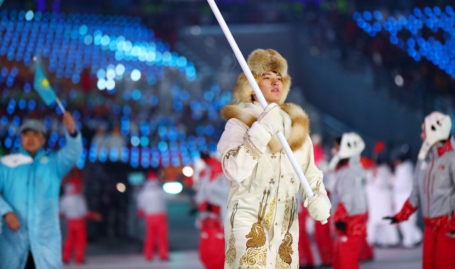Read moreAbzal Azhgaliyev of Kazakhstan carries the national flag with other delegates during the opening ceremony. #