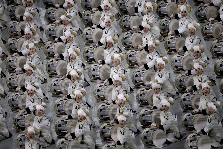 Read morePerformers drum during the opening ceremony on February 9, 2018. #