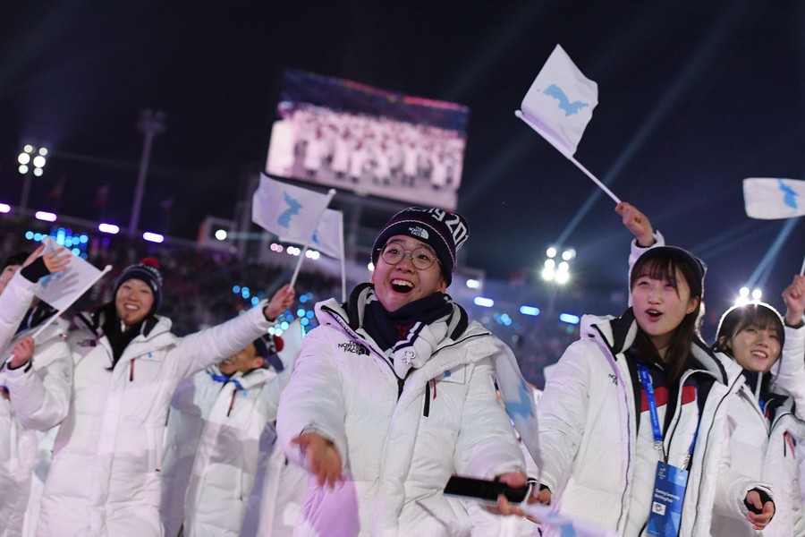 Read moreUnified Korea's athletes parade during the opening ceremony of the Pyeongchang 2018 Winter Olympic Games on February 9, 2018. #