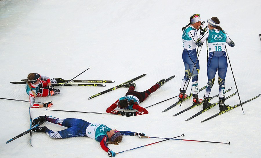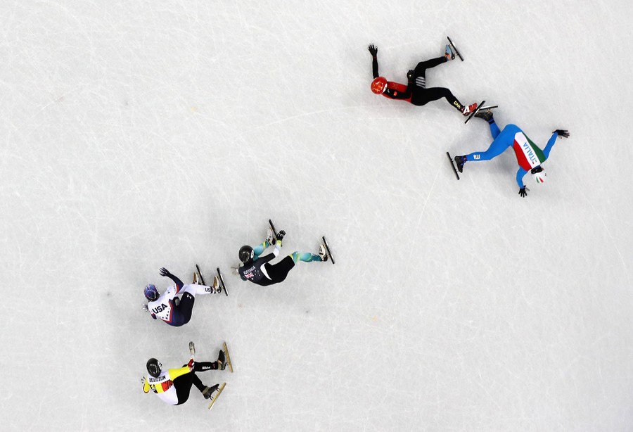After five days of competition, Germany leads the Olympic medal standings with 12 total medals, followed by the Netherlands and the United States. High winds have made alpine events difficult and have led to several postponements, but events at the Olympic Sliding Center, Phoenix Snow Park, and other venues have been going smoothly. Here, a look at some of the competition from the first days of the 2018 Winter Olympics in South Korea, from short track and slopestyle to ice dancing, skeleton, ski jumping, and more.
