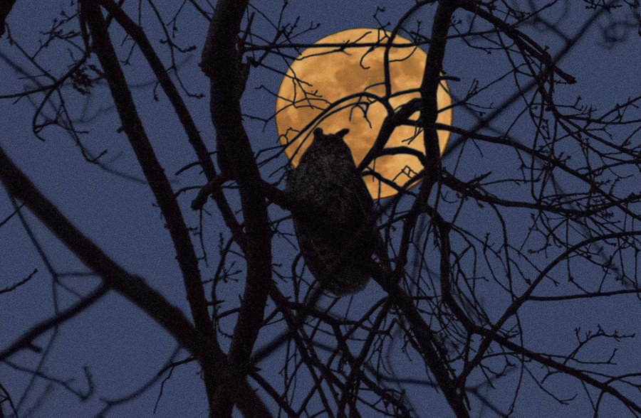 Read moreA female Long-eared owl is silhouetted by a supermoon as she sits in a tree in New York's Central Park after being treated and released on January 1, 2018. Two workers for a company that normally treats birds as pests to be eradicated instead became saviors when they rescued the owl that had struck a building in midtown Manhattan. The men took her to the Wild Bird Fund, a New York city wildlife rehabilitation organization, who treated her for a concussion and released her at sunset. #