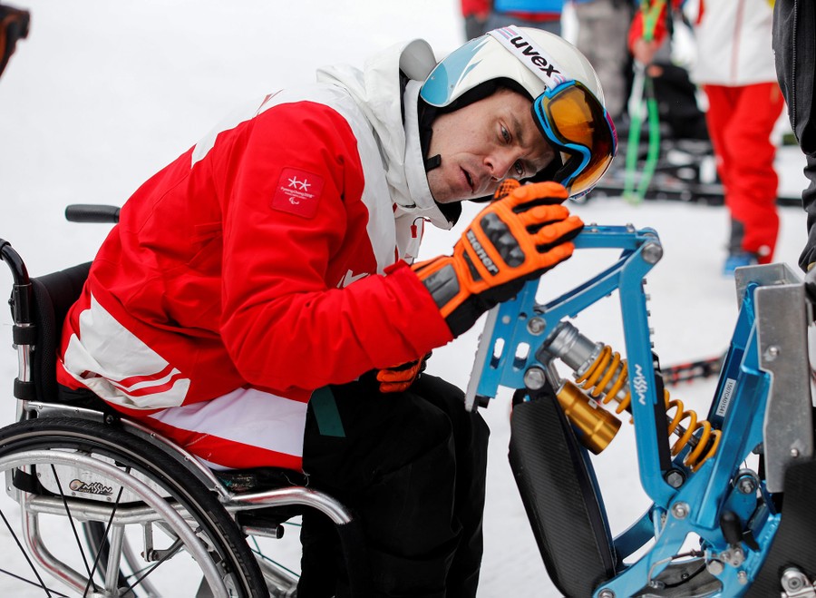 Read moreAustrian paralympic skier Roman Rabl checks his ski equipment following free training at the Jeongseon Alpine Center prior to the start of the Paralympic Games, on March 9, 2018. #