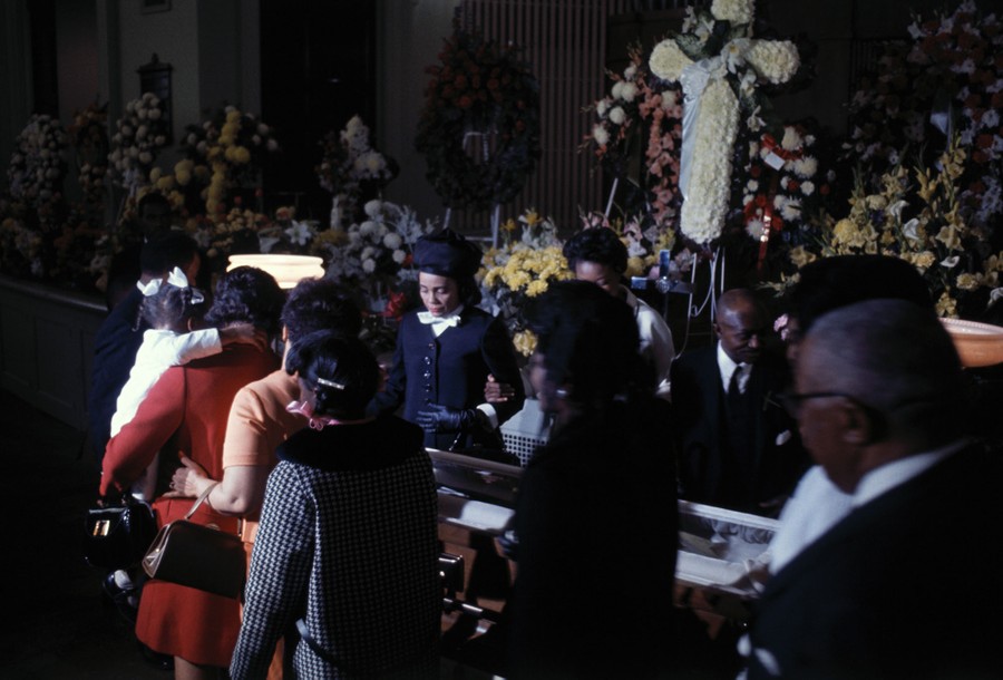 Read moreOriginal caption: "A huge portrait of slain civil-rights leader Dr. Martin Luther King Jr. is held up by marchers during his funeral procession on April 9, 1968. More than 50,000 blacks and whites mingled in the tribute to the advocate of racial progress through nonviolence who was killed by a sniper's bullet." #