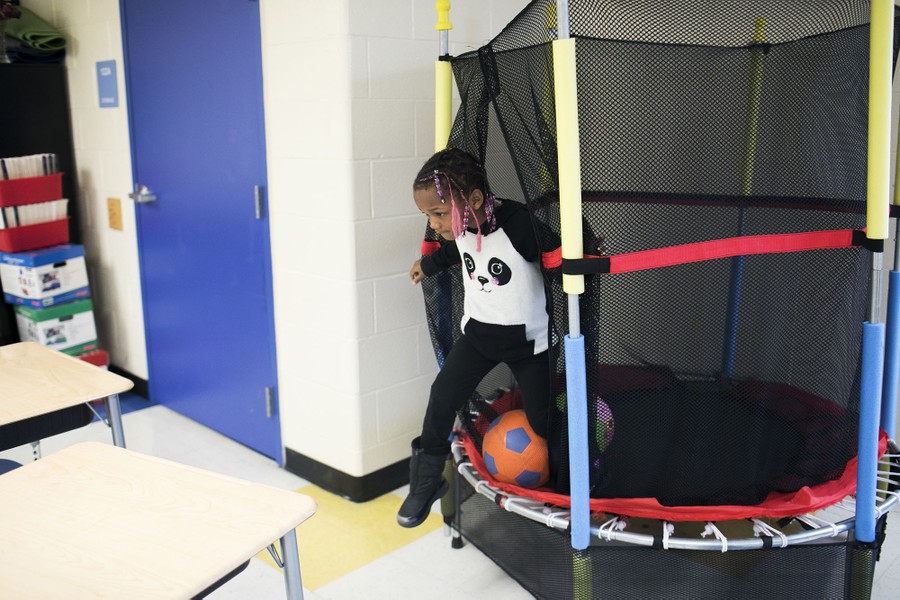 Many of Ohio Avenue’s children have brushed against violence and other traumatic experiences in their short lives—abuse and neglect, a household member addicted to drugs, homelessness, to name a few. At schools like this, a small dispute can easily turn into a scuffle that leads to an administrator or school-safety officer corralling the kids involved, if not suspending them. But Ohio Avenue is trying to find another way: Every adult in the building has received training on how children respond to trauma. They’ve come to understand how trauma can make kids emotionally volatile and prone to misinterpret accidental bumps or offhand remarks as hostile. They’ve learned how to de-escalate conflict, and to interpret misbehavior not as a personal attack or an act of defiance. And they’re perennially looking for new ways to help the kids manage their overwhelming feelings and control their impulses.
