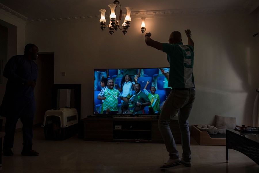 Read moreIn Lagos, Nigeria fans react as they watch the Russia 2018 World Cup Group D match between Nigeria and Iceland on June 22, 2018. Ahmed Musa from Nigeria scored twice in their must-win second group match against Iceland in Volgogard to give the Nigerians a 2-0 victory. #