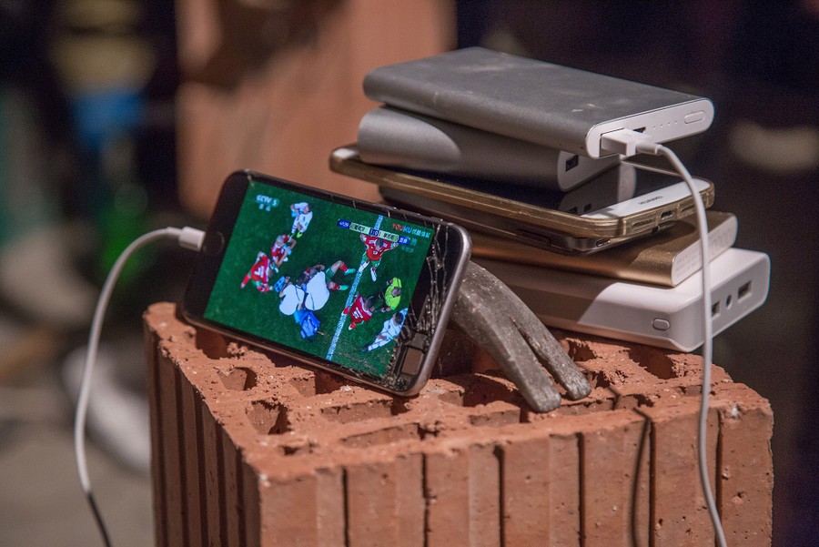 Read moreIn Hangzhou, Zhejiang Province, China, construction workers watch the World Cup Group B match between Portugal and Morocco on a smartphone, propped up on bricks at a construction site, on June 20, 2018. #