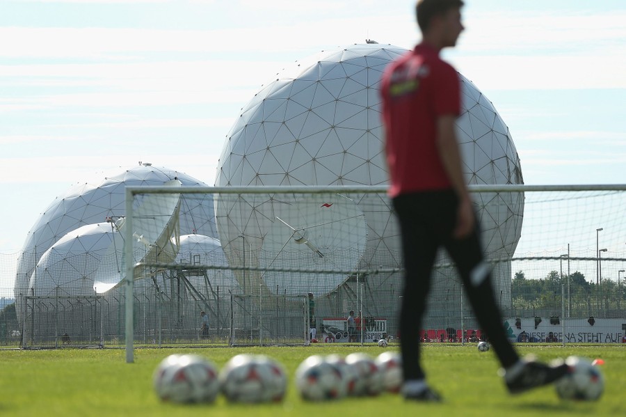 Read morePeople play football at a field next to radomes of the digital communications listening station of the Bundesnachrichtendienst, the German intelligence agency, on June 2, 2015, in Bad Aibling, Germany. #