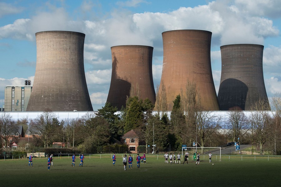 Read moreShipston Excelsior FC (black and white) play Burnwood Town FC at Brereton Town FC's ground in front of the coal-fired Rugeley Power Station, near Rugeley, England, on April 2, 2016. #