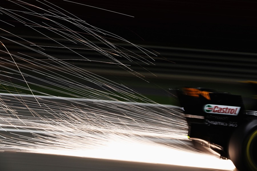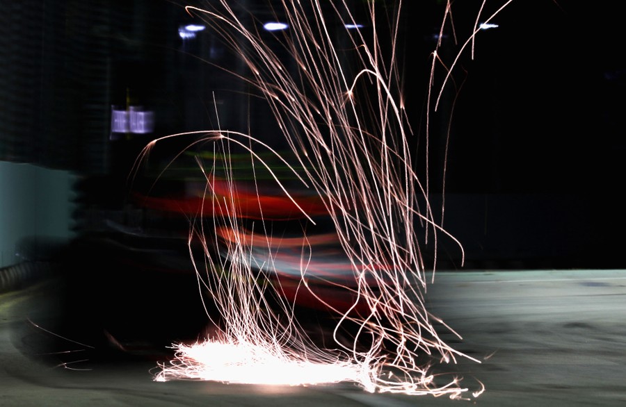 In 2015, a change in Formula One racing regulations brought titanium skid blocks back to the cars, in turn bringing about the return of the occasional bright rooster tail of sparks on the track. The rule was mostly changed for safety reasons, but also to reintroduce some visual aesthetics—the sparks can be beautiful. According to a story by the BBC, some drivers love the sparks not just for the spectacle, but also because they can create a distraction to drivers behind them, even making burn marks in their visors. For the past few years, sports photographers have been having fun with these showers of light and fast-moving vehicles, and I thought I’d share some of my favorite shots here today.