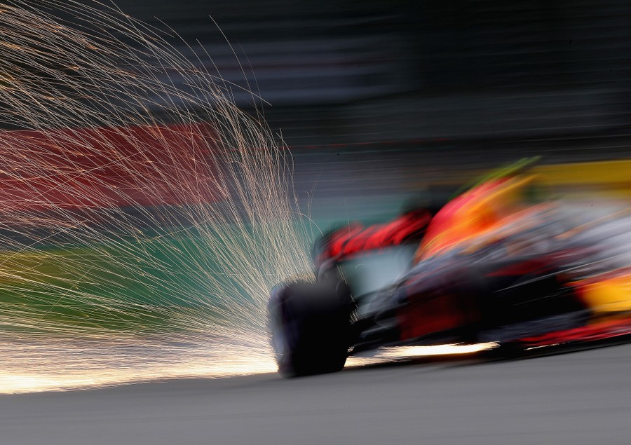 Read moreSparks fly behind Max Verstappen of the Netherlands as he drives the Red Bull Racing Red Bull–TAG Heuer RB12 TAG Heuer during the final practice for the Formula One Grand Prix of Singapore at Marina Bay Street Circuit on September 17, 2016. #