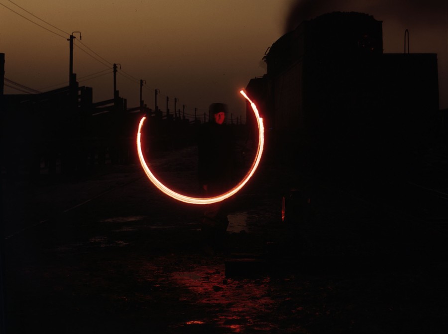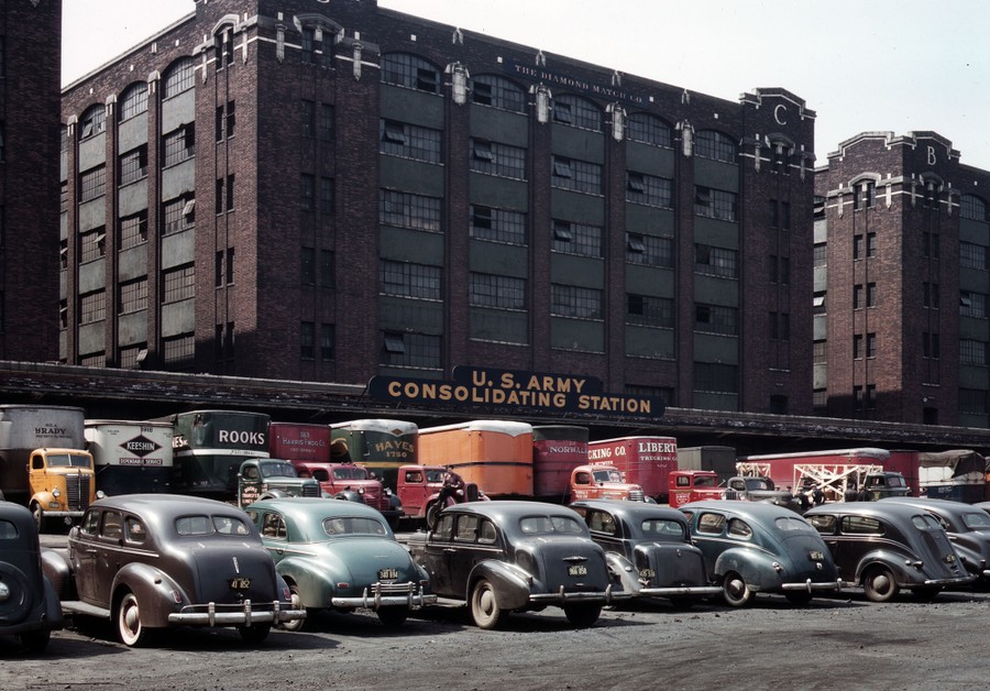 Jack Delano was one of the photographers who worked in Roy Stryker’s Farm Security Administration photography program in the early 1940s, traveling the American countryside, photographing people and places with the stated goal of “introducing America to Americans.” In 1942 and ’43, Delano spent time in the rail yards of Chicago, documenting the busy freight hub and the countless workers who kept the trains running 24 hours a day. Some of his most striking images were made on Kodachrome color transparencies, wonderfully preserved in the Library of Congress today. Collected below, a handful of images from Chicago as it was some 75 years ago.