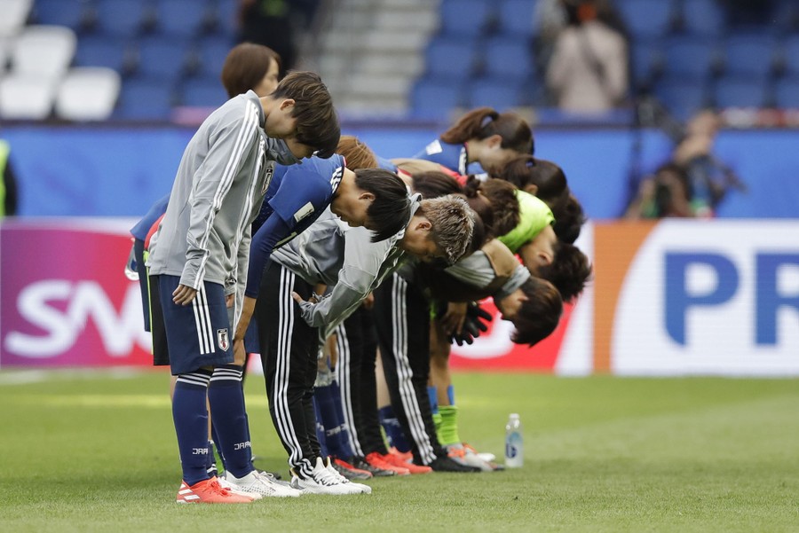Read moreJapan players bow to fans at the end of the Women's World Cup Group D match between Argentina and Japan at Parc des Princes in Paris on June 10, 2019. The match ended in a 0–0 draw. #