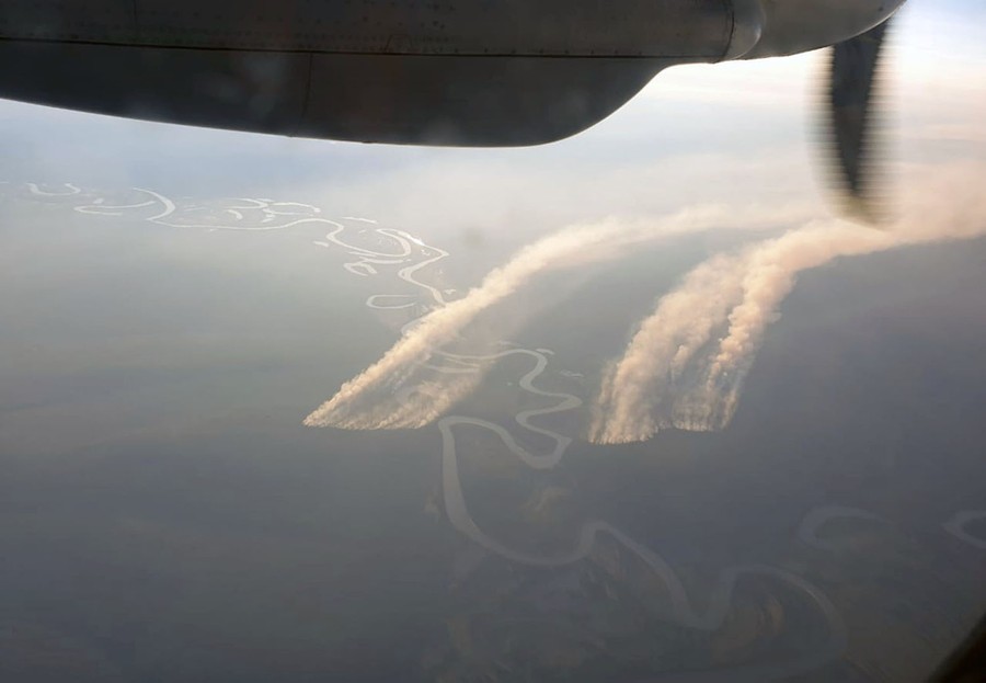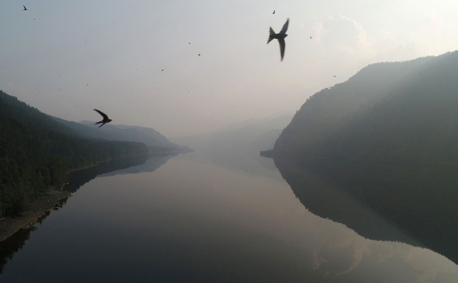 Read moreBirds fly over the Yenisei River, shrouded in smoke from wildfires, in the Siberian Taiga area, outside the village of Sizaya, Krasnoyarsk, Russia, on July 22, 2019. #