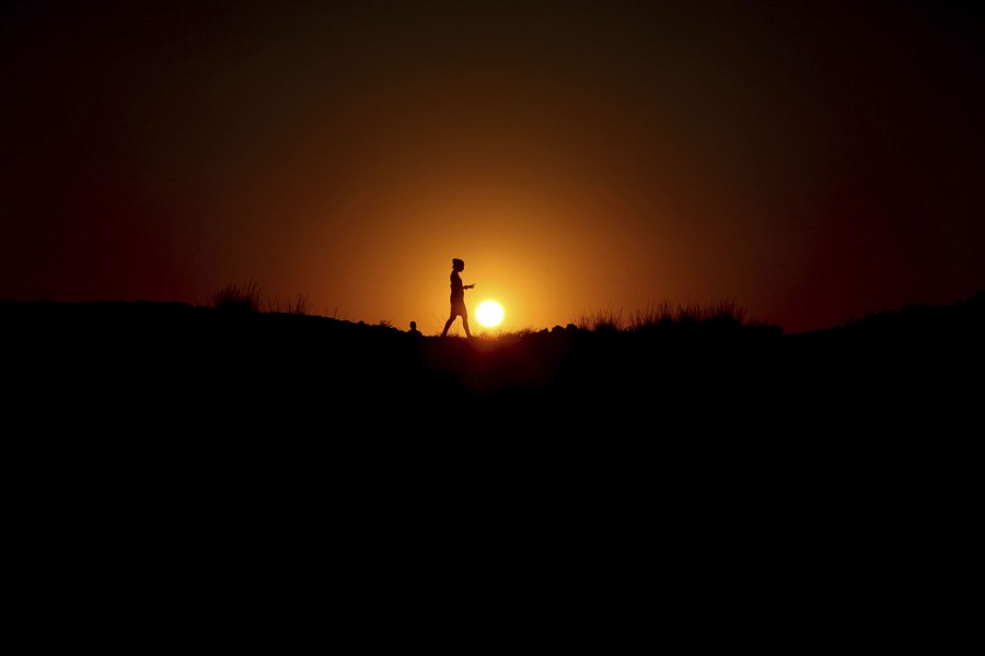 Read moreA tourist walks during sunset after a hot day near the sea on Makronissos Beach in the southeast resort of Ayia Napa, on the Mediterranean island of Cyprus, on July 27, 2019. #