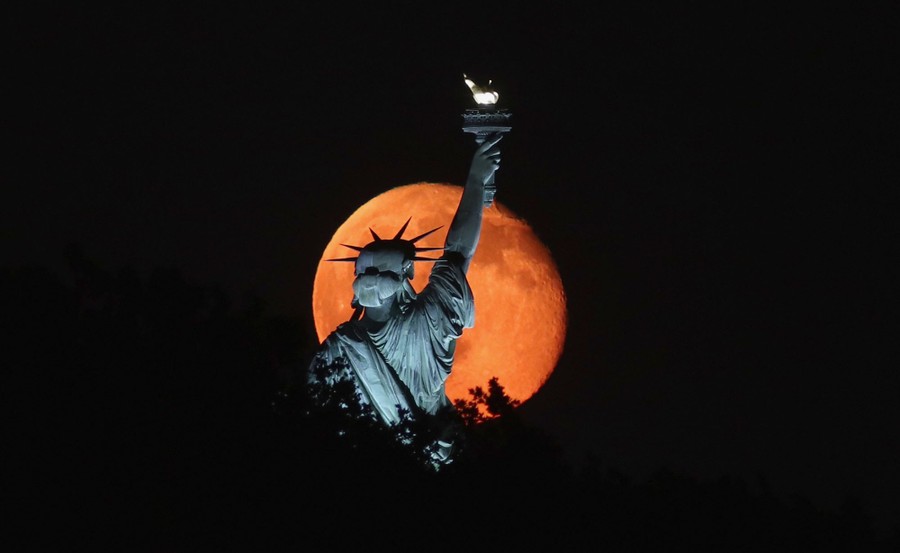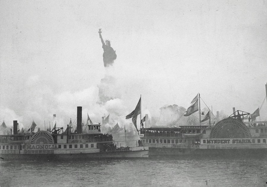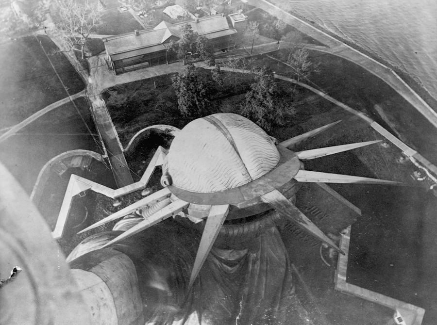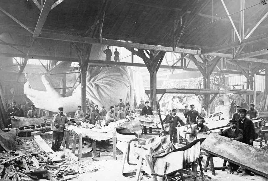 The 151-foot-tall Statue of Liberty, officially Liberty Enlightening the World, designed by Frédéric Auguste Bartholdi and Gustave Eiffel, was a gift to the United States from the people of France in 1886. With a tablet inscribed with the date of America’s independence, a broken chain beside one foot symbolizing the abolition of slavery, and a guiding light held up for the world to see, the structure is loaded with symbolism. The sonnet “The New Colossus,” written by Emma Lazarus for the statue, reads in part: “Here at our sea-washed, sunset gates shall stand / a mighty woman with a torch, whose flame / is the imprisoned lightning, and her name / Mother of Exiles.” The statue has stood watch over New York Harbor for more than 130 years, as the nearby city skyline evolved and grew dramatically. Gathered below, images of the Statue of Liberty, inside and out, from her birth in Paris to the present day.