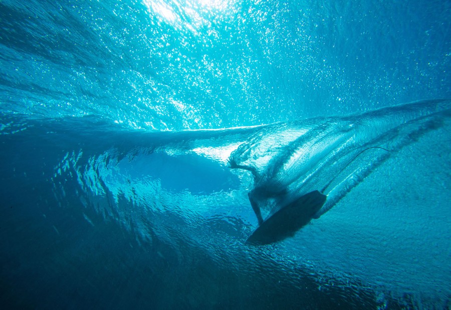 Read moreTaumata Puhetini of Tahiti rides in the tube of a cresting wave, as seen from an underwater perspective, at Teahupo‘o reef on August 15, 2019, during practice for the Tahiti Pro trials. #