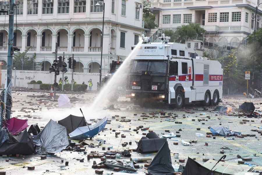 Five months into a pro-democracy protest movement in Hong Kong, some of the most violent clashes so far took place this past weekend, as riot police stormed the campus of a university where protesters had barricaded themselves. Hundreds of demonstrators had occupied Hong Kong Polytechnic University and prepared for a siege. Later, as some attempted to leave the campus, they found themselves trapped by police cordons and tear gas. Last night, police moved in with more tear gas, water cannons, and batons after days of confrontations in and around the campus, arresting many as they attempted to flee. The protests began as a reaction to a controversial extradition bill, but have evolved into broader demands for democracy and investigations into police brutality, challenging Beijing’s authority.