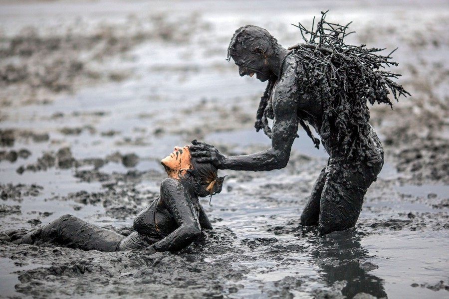 Read moreA reveler puts mud on a woman’s head during the “Bloco da Lama,” a mud Carnival party, in Paraty, Rio de Janeiro, on February 22, 2020. #