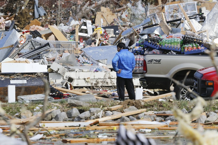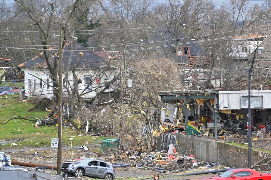 At least one tornado tore through central Tennessee earlier this week, damaging hundreds of houses and larger buildings and killing at least 24 people. Tennessee Governor Bill Lee has declared a state of emergency as rescuers search for dozens of people still listed as missing, most of them in Putnam County, east of Nashville. Below are images of the storm’s widespread destruction and some of the rescue and salvage work taking place.