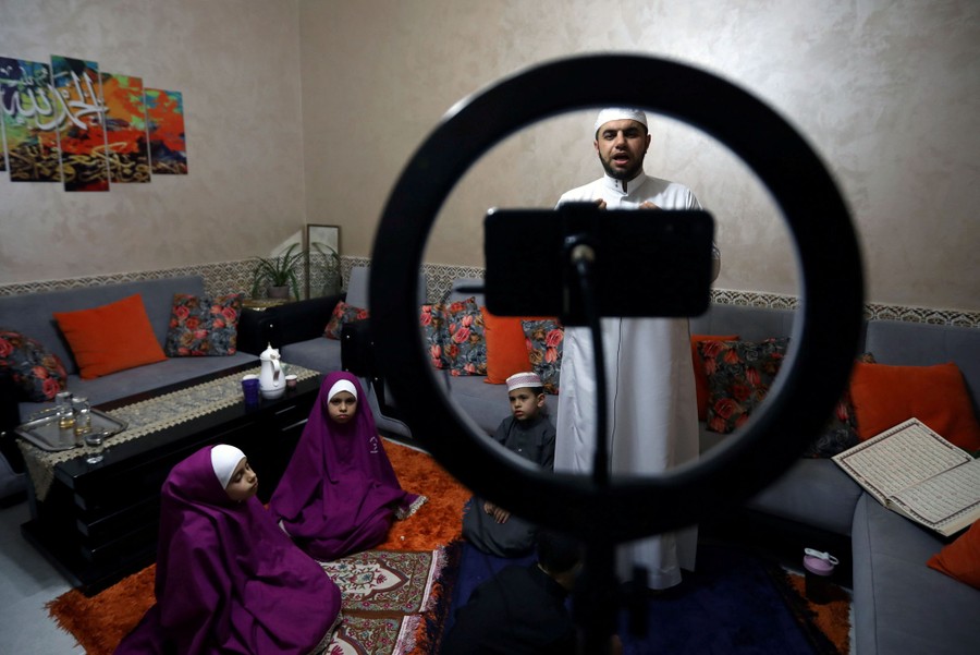 With varying lockdowns in place, and safety measures enacted by local communities, the Muslim holy month of Ramadan has been observed very differently around the world this year. Large gatherings at mosques have been canceled, communal iftar meals have been reduced to smaller family groups in their homes, and visits to extended family have been cut short. Gathered here, some images from the past month of people observing Ramadan in a changed world. See also our short documentary, “Ramadan in Quarantine,” and an earlier, historic photo story, “Celebrating Ramadan Before the Pandemic.”