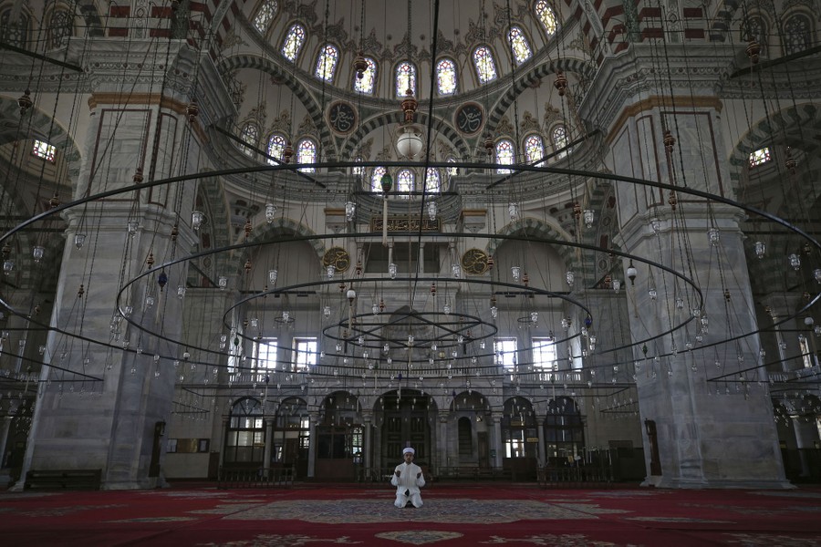 Read moreEsat Sahin, imam of the iconic Fatih Mosque, holds a prayer held without the public due to the coronavirus restrictions in Istanbul, Turkey, on April 24, 2020, during the first day of the holy fasting month of Ramadan. #