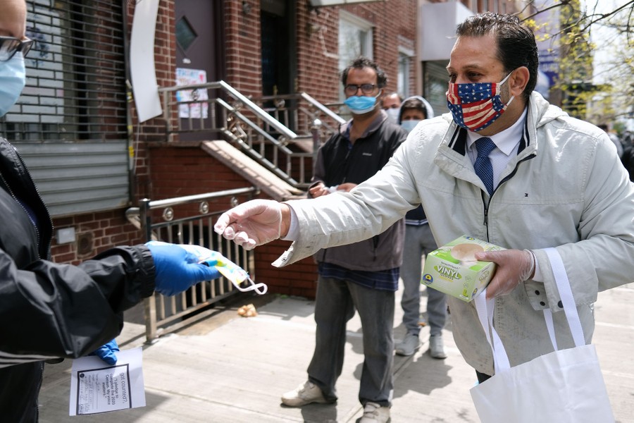 Read moreMohammad Razvi, in conjunction with the Ramadan holiday, hands out face masks and gloves at a food distribution outside of a Brooklyn mosque and cultural center in New York City on May 1, 2020. #