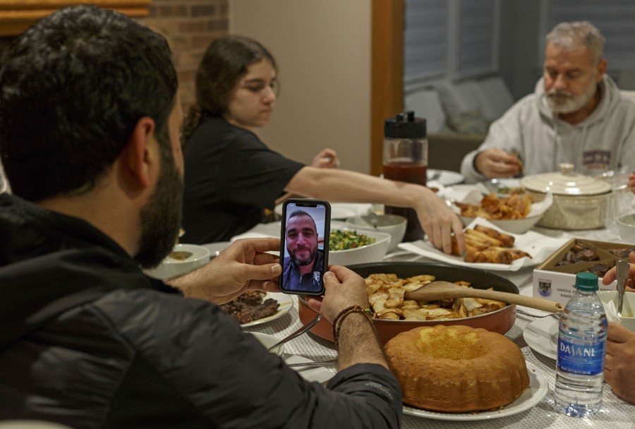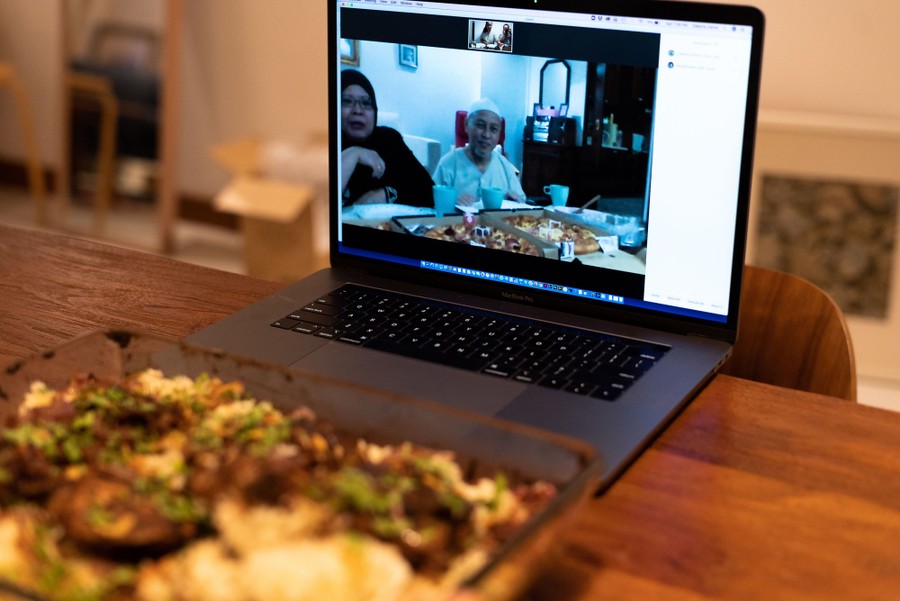 Read moreAbbas Al Haj Ahmed talks with his cousin Adam Bazzi over a video call while their family shares a meal and breaks fast on the first full day of Ramadan on April 24, 2020, in Dearborn, Michigan. #