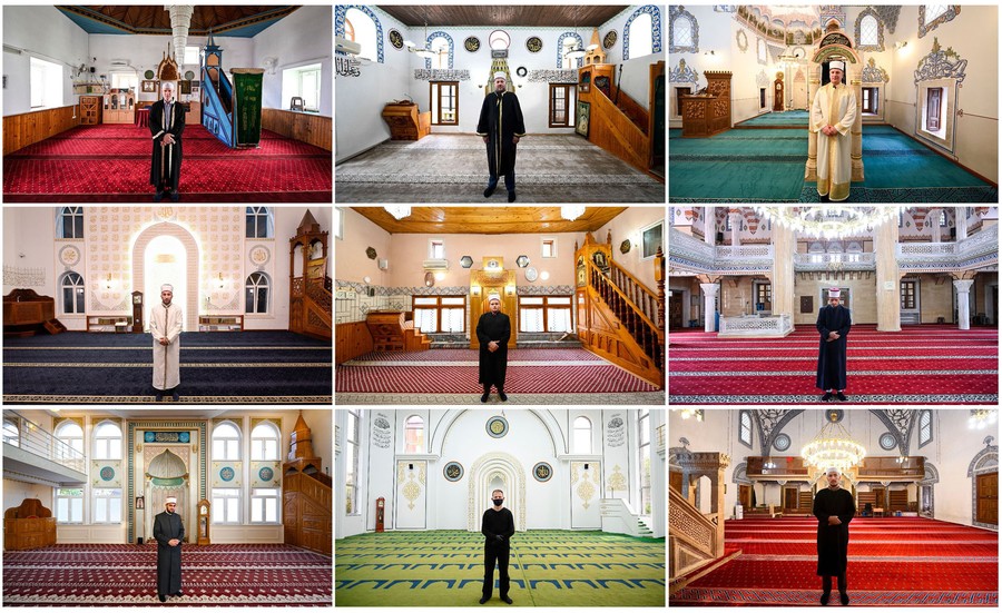 Read moreThis combination of pictures created on May 21, 2020 shows imams across Kosovo posing in empty mosques as Kosovo's mosques have been closed due to the spread of the virus. #