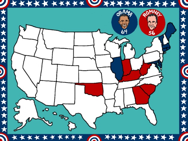 Obama performed very well in swing states. He lost only Indiana and North Carolina from his huge 2008 victory, in which he took 365 electoral votes.